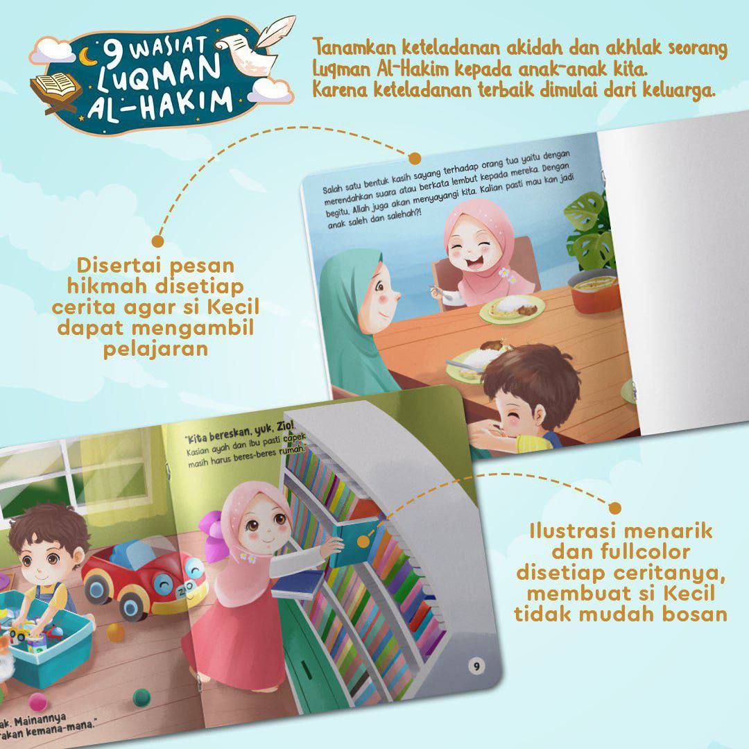 Terdiri dari 9 buku dan dikemas dalam bentuk cerita menarik yang dekat dengan kehidupan sehari-hari si Kecil. Sebagai sarana menarik bagi Ayah Bunda menanamkan keteladanan dan akhlak yang sama seperti yang ditanamkan Luqman Al-Hakim kepada anak-anaknya. Insya Allah.